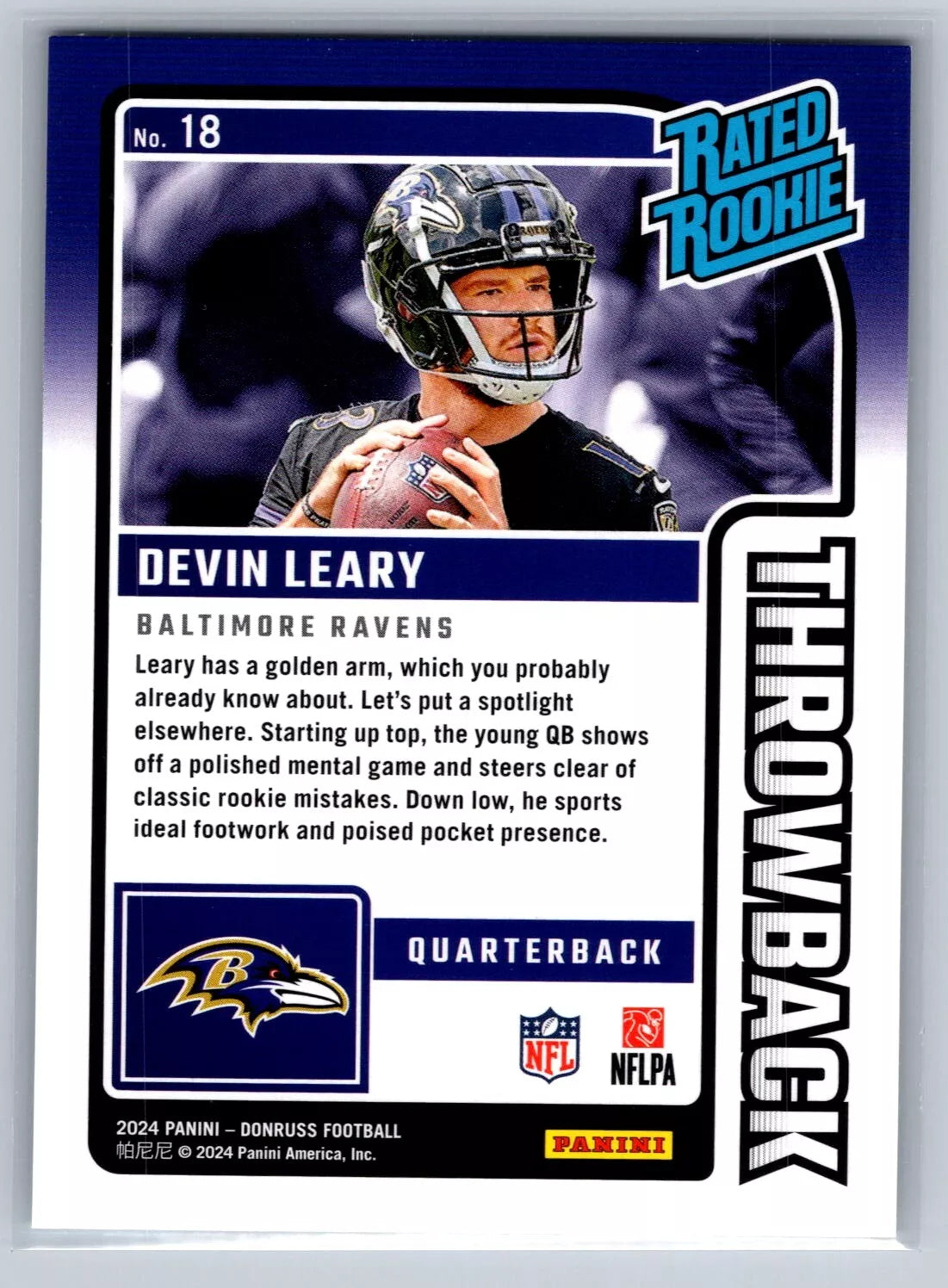 Devin Leary 2024 Donruss Rated Rookie Throwback Mint Card #18