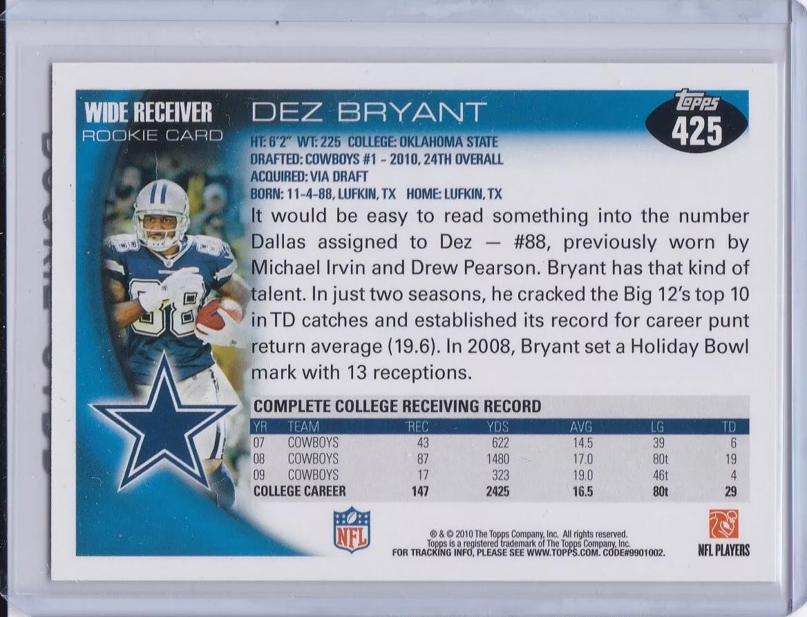 Dez Bryant 2010 Topps Variation Series Mint ROOKIE Card #425