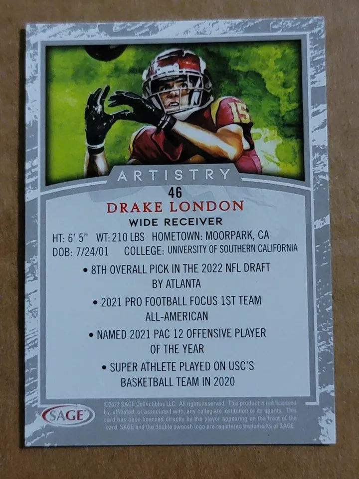 Drake London 2022 Sage Artistry Silver Series Mint Rookie Card #46