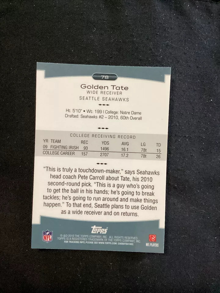 Golden Tate 2010 Topps Platinum Series Mint Rookie Card #78