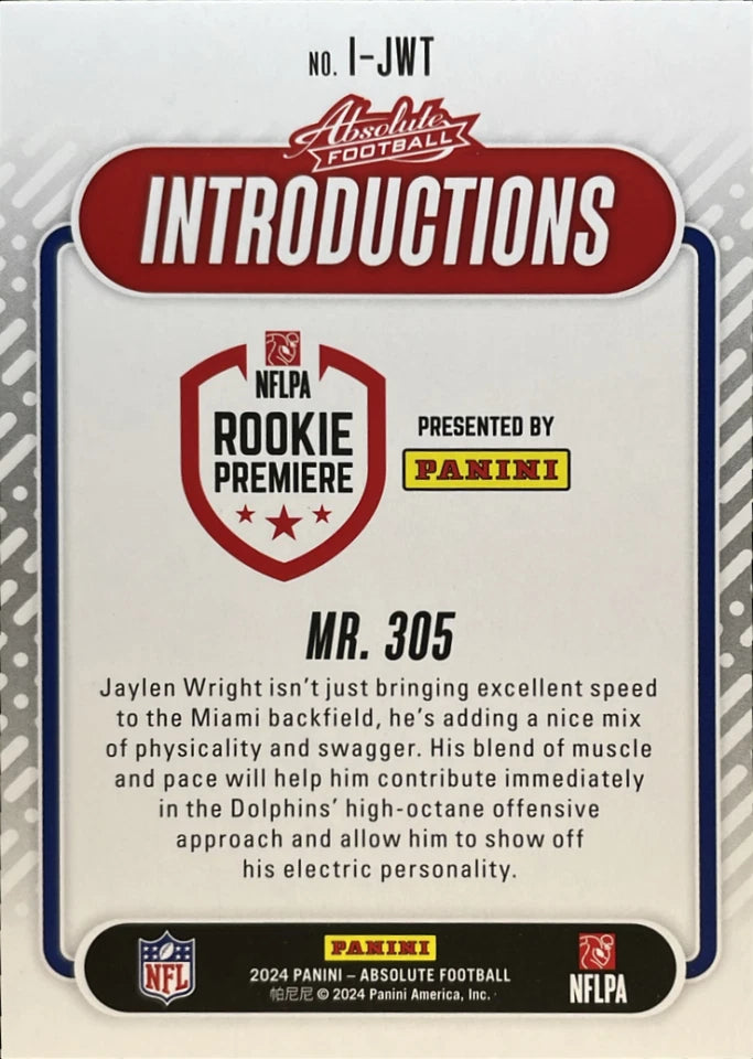 Jaylen Wright 2024 Panini Absolute Introductions Series Mint Rookie Card #I-JWT