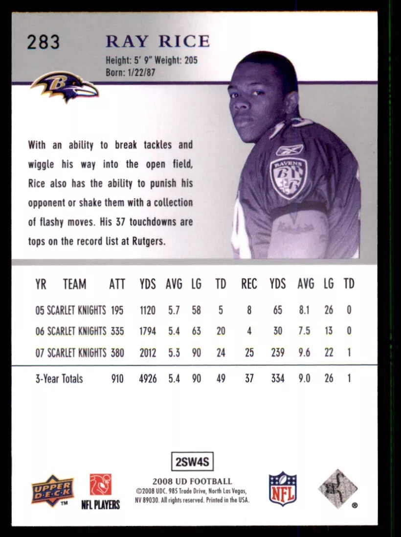Ray Rice 2008 Upper Deck Star Rookie Series Mint Card #283