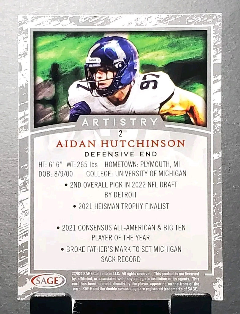 Aidan Hutchinson 2022 SAGE Artistry Silver Series Mint Rookie Card #2