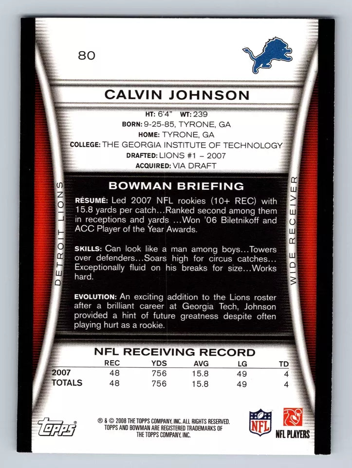 Calvin Johnson 2008 Bowman Series Mint Card #80