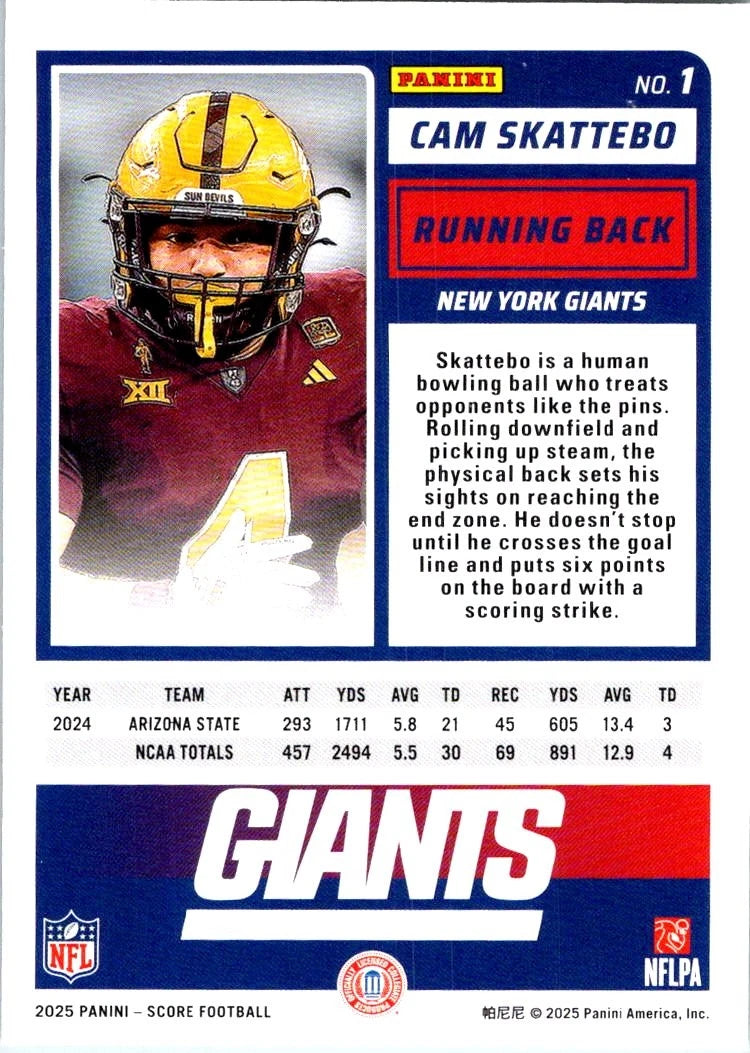 Cam Skattebo 2025 Score Series Mint Rookie Card #1