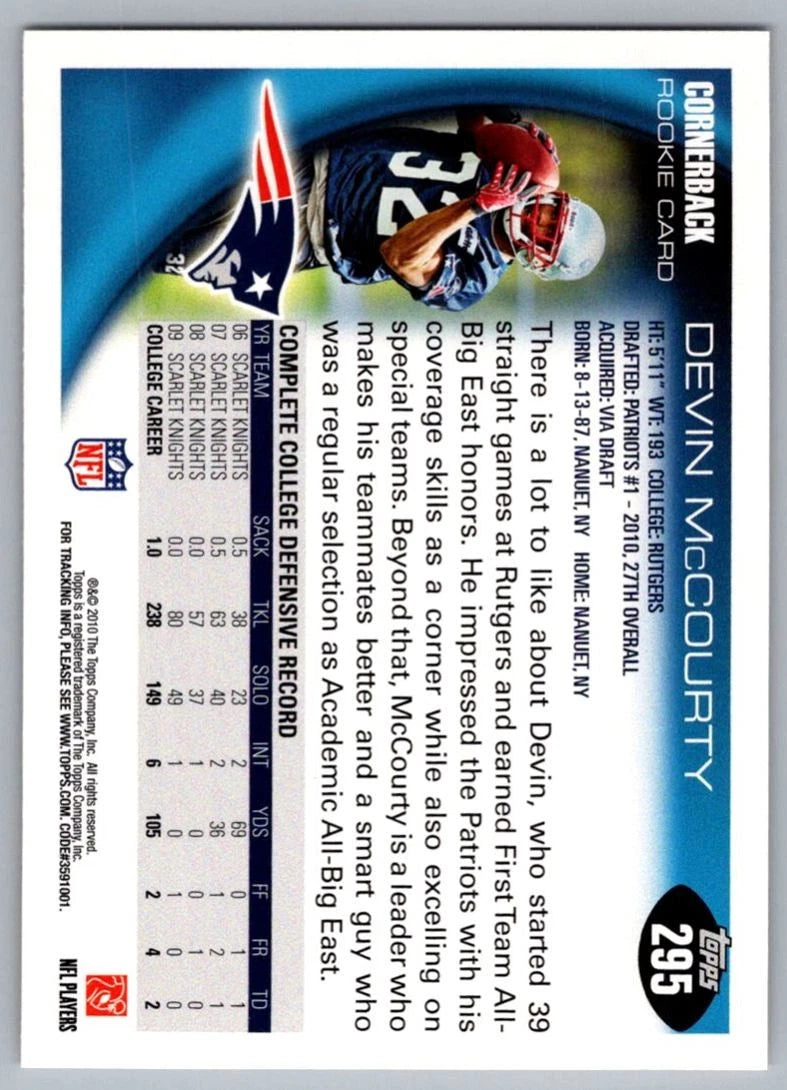 Devin McCourty 2010 Topps Series Mint Rookie Card #295
