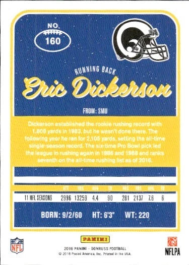 Eric Dickerson 2016 Donruss Series Mint Card #160
