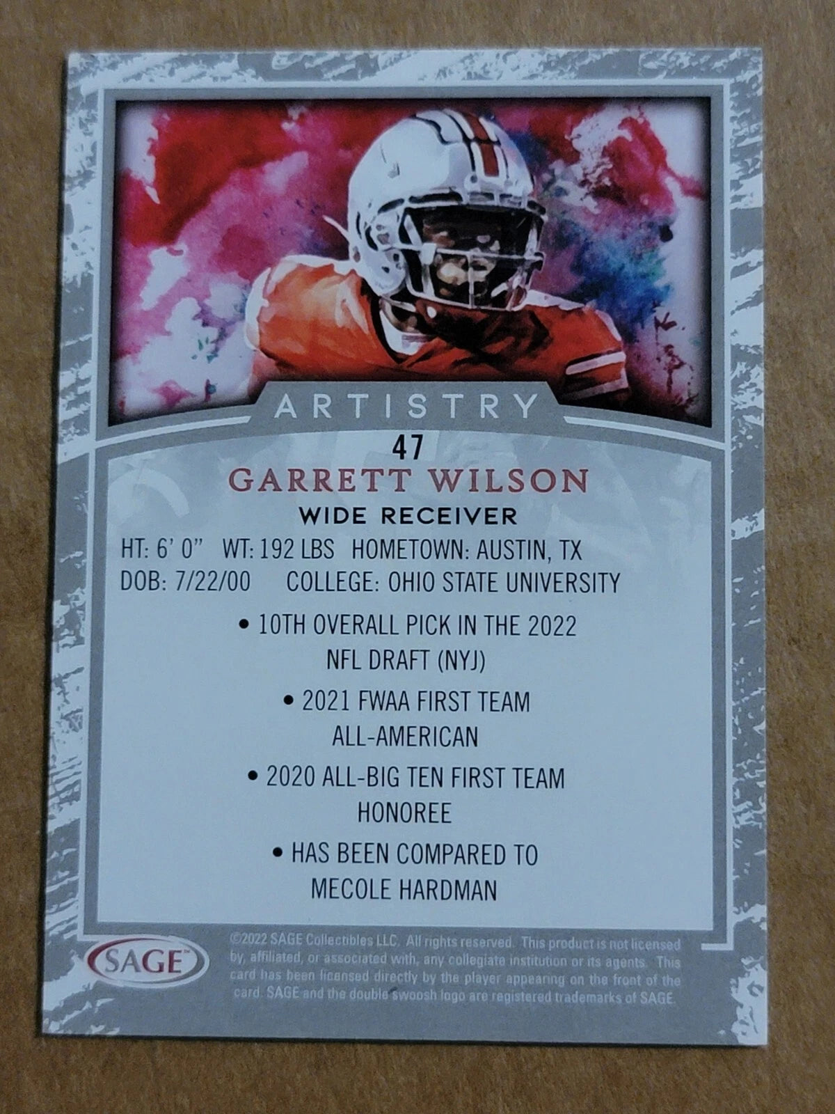 Garrett Wilson 2022 Sage Artistry Series Mint Rookie Card #47