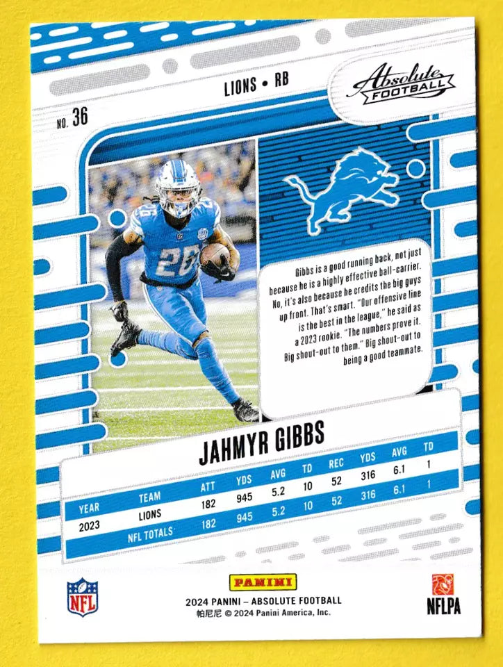 Jahmyr Gibbs 2024 Panini Absolute Series Mint Card #36