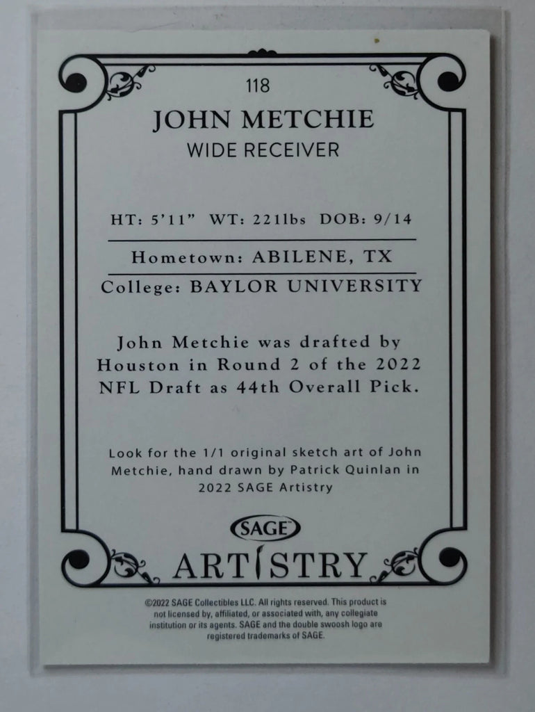 John Metchie III 2022 Sage Artistry Series Mint Rookie Card #118