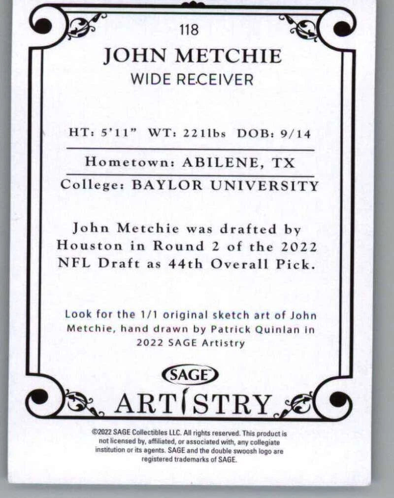 John Metchie III 2022 Sage Artistry Silver Series Mint Rookie Card #118
