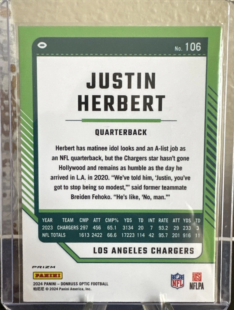 Justin Herbert 2024 Donruss Optic Silver Prizm Series Mint Card #106