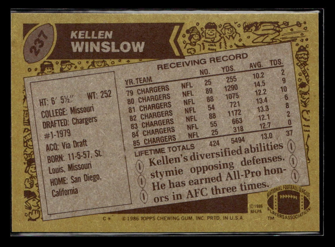 Kellen Winslow 1986 Topps Series Card #237