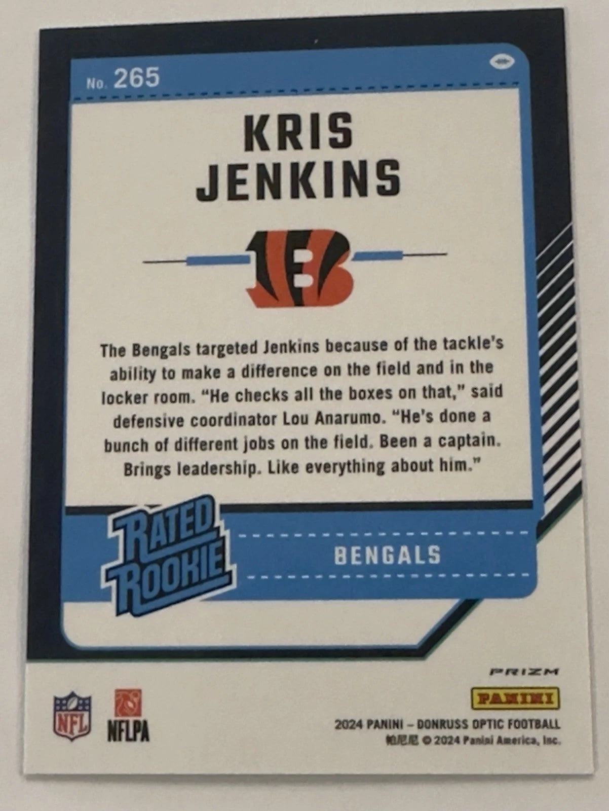 Kris Jenkins 2024 Donruss Optic Rated Rookie Silver Holo Prizm Series Mint Card #265