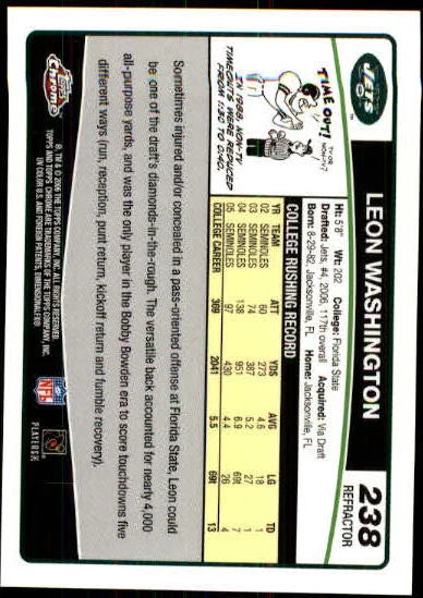 Leon Washington 2006 Topps Chrome Refractor Series Mint Rookie Card #238