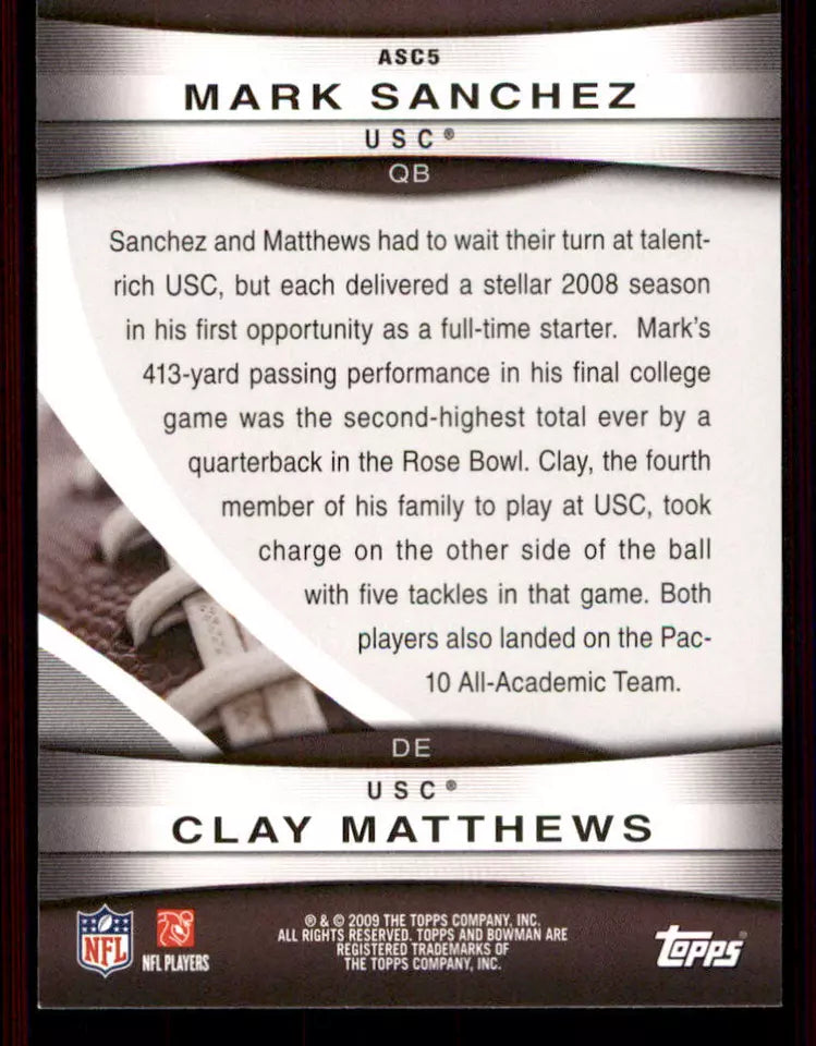 Mark Sanchez/Clay Matthews 2009 Bowman Draft Rookie All-Stars Combos Series Mint Card #ASC5