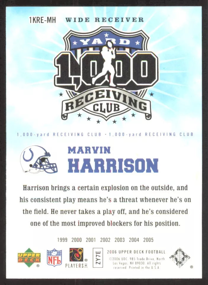 Marvin Harrison 2006 Upper Deck Football 1000 Receiving Club Series Mint Card #1KRE-MH