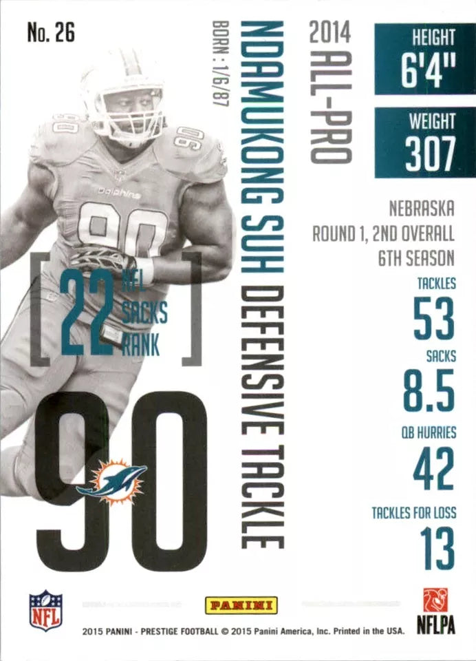 Ndamukong Suh 2015 Panini Prestige Series Mint Card #26