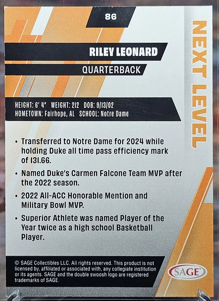 Riley Leonard 2025 Sage Next Level Series Mint Rookie Card #86