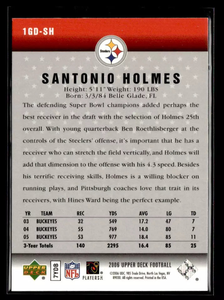 Santonio Holmes 2006 Upper Deck Gridiron Debut Mint Card #GDSH