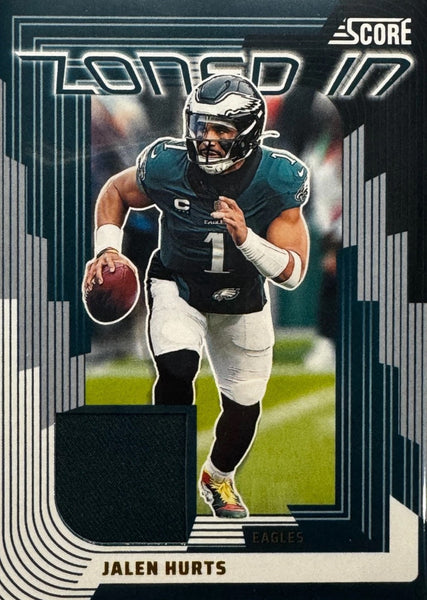 Jalen Hurts 2025 Panini Score Zoned In Jerseys Patch Relic Series Mint Insert Card #ZON-JHS Featuring an Authentic Green Jersey Swatch $12.99