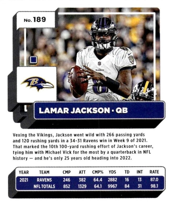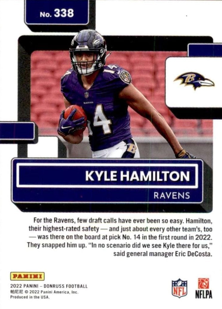 Baltimore Ravens 2022 Donruss Factory Sealed Team Set Featuring Lamar Jackson with a Rated Rookie Card of Kyle Hamilton plus 4 others