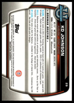 KD Johnson 2022 Bowman Chrome University 1st Bowman Pink Card #29