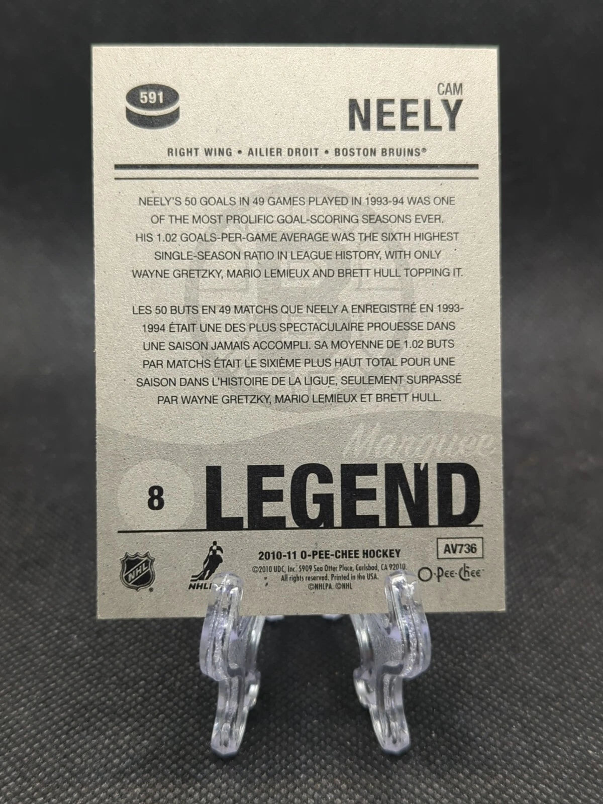 Cam Neely 2010 2011 O-Pee-Chee Marquee Legend Series Card #591