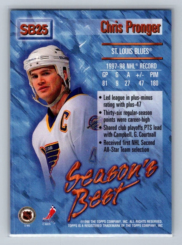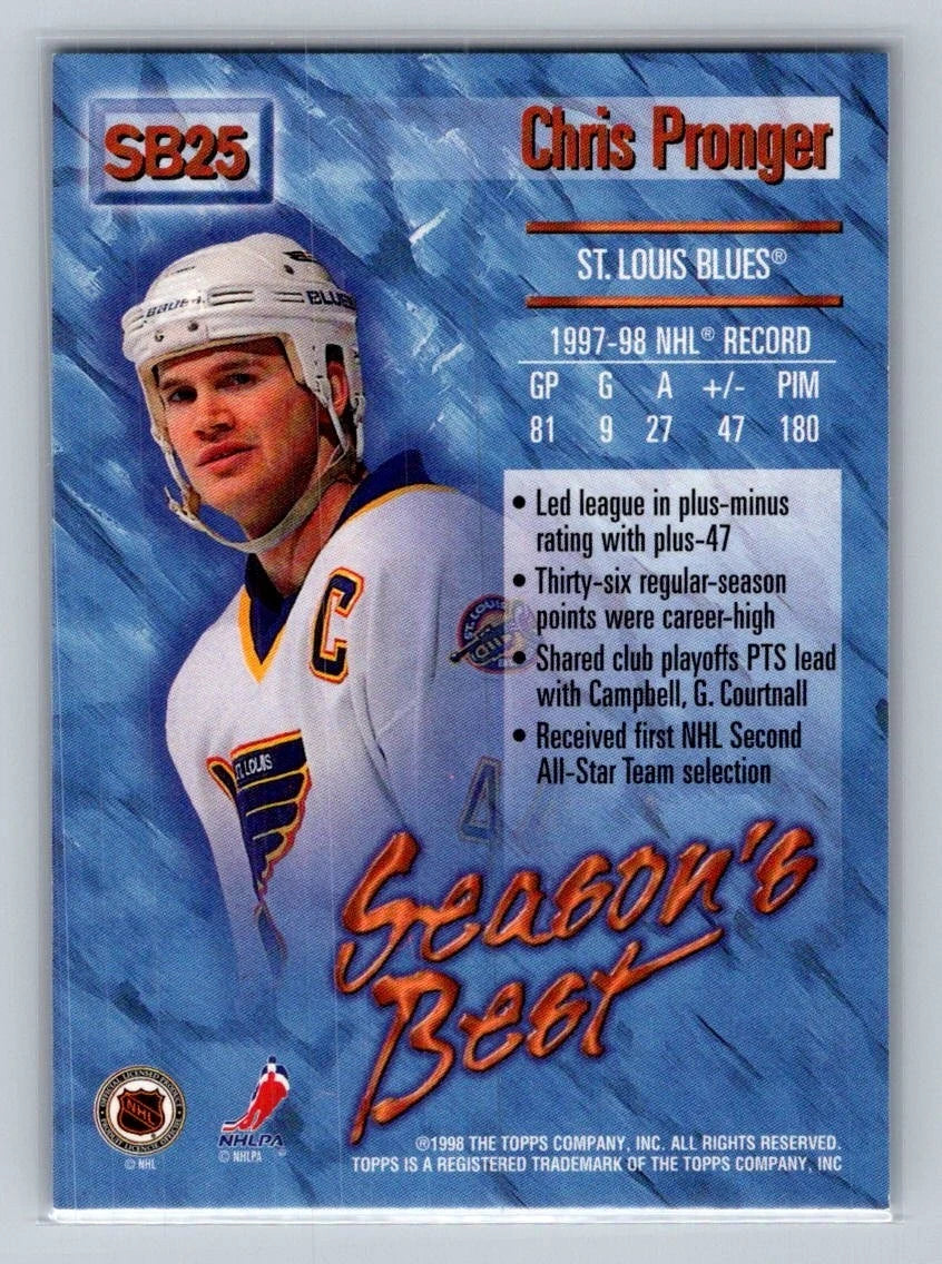 Chris Pronger 1998 1999 Topps Season's Best Performance Plus Card #SB25