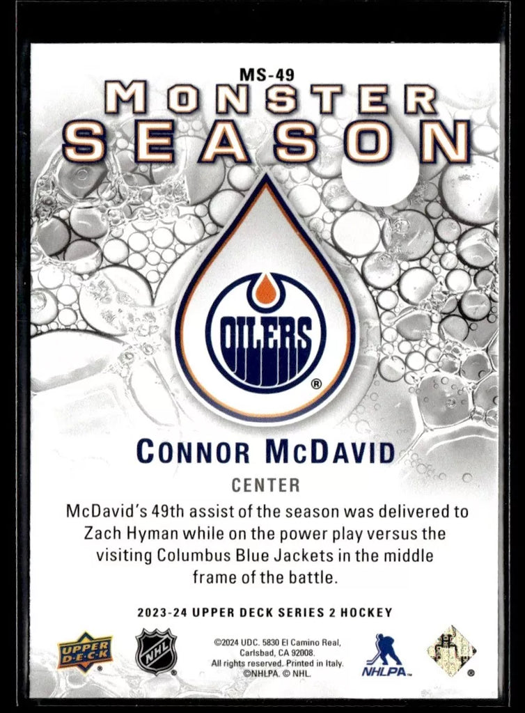Connor McDavid 2023 2024 Upper Deck Monster Season Mint Card #MS-49