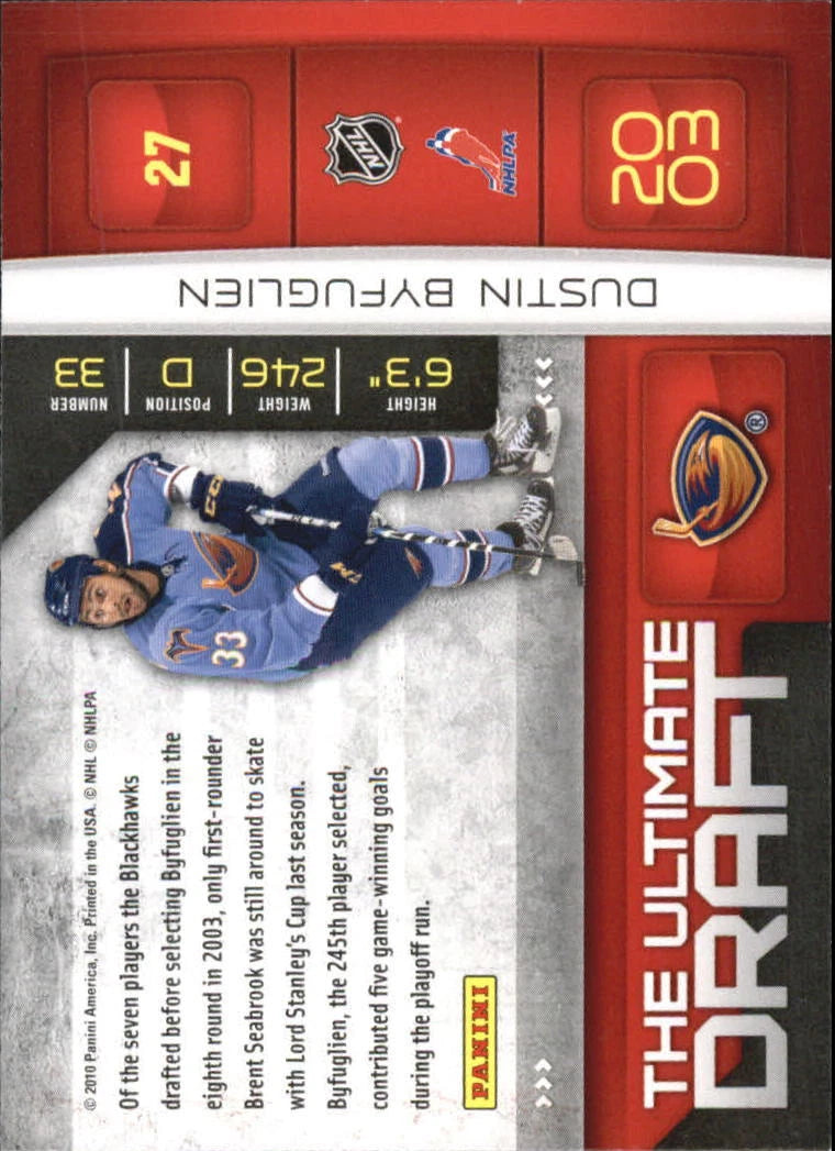Dustin Byfuglien 2010 2011 Donruss The Ultimate Draft Card #27