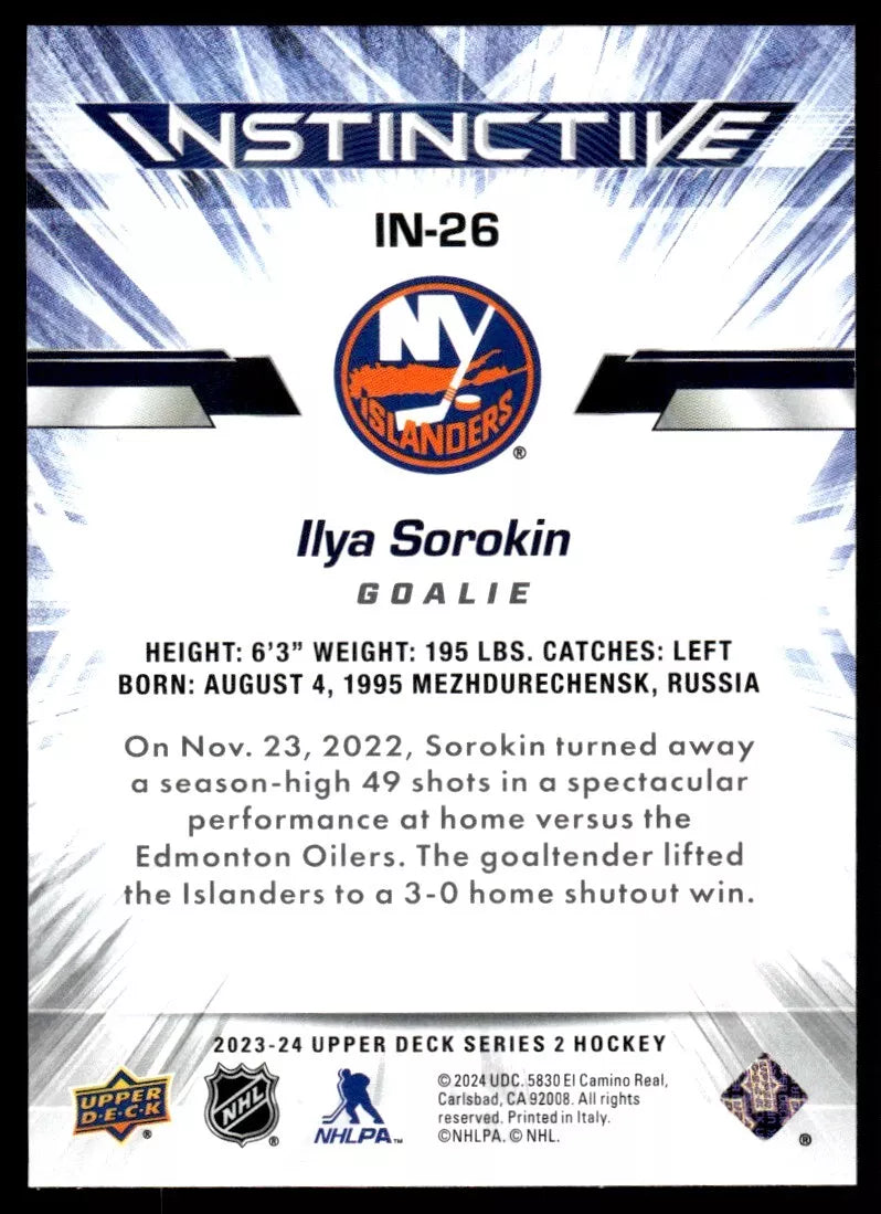Ilya Sorokin 2023 2024 Upper Deck Instinctive Mint Card #IN-26