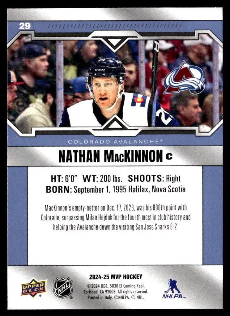 Nathan MacKinnon 2024 2025 Upper Deck MVP Series Mint Card #29