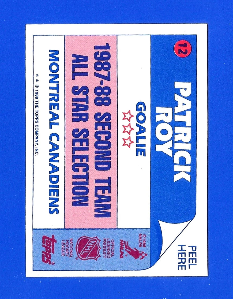Patrick Roy 1988 1989 Topps Stickers Card #12