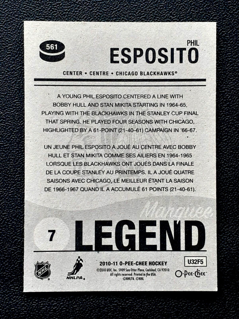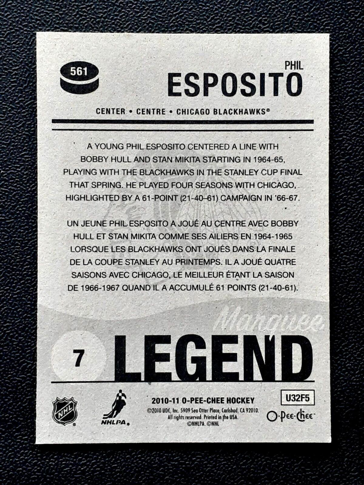 Phil Esposito 2010 2011 O-Pee-Chee Marquee Legend Series Card #561
