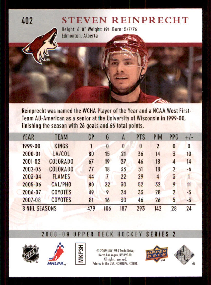 Steven Reinprecht 2008 2009 Upper Deck Exclusives Card #402   Only 100 made