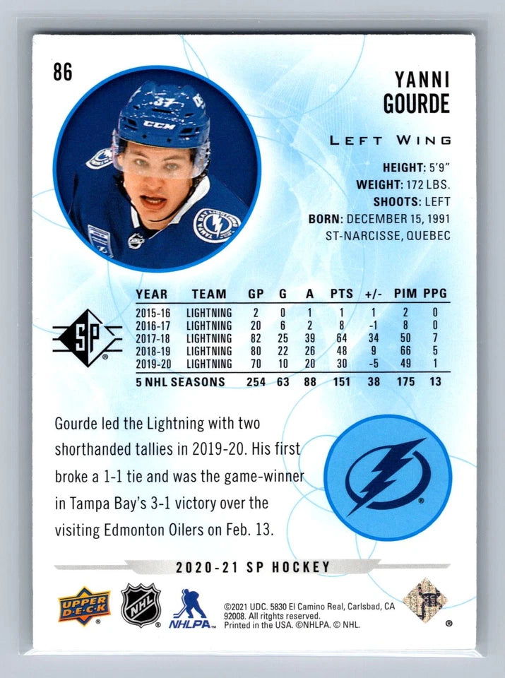 Yanni Gourde 2020 2021 SP Blue Series Mint Card #86