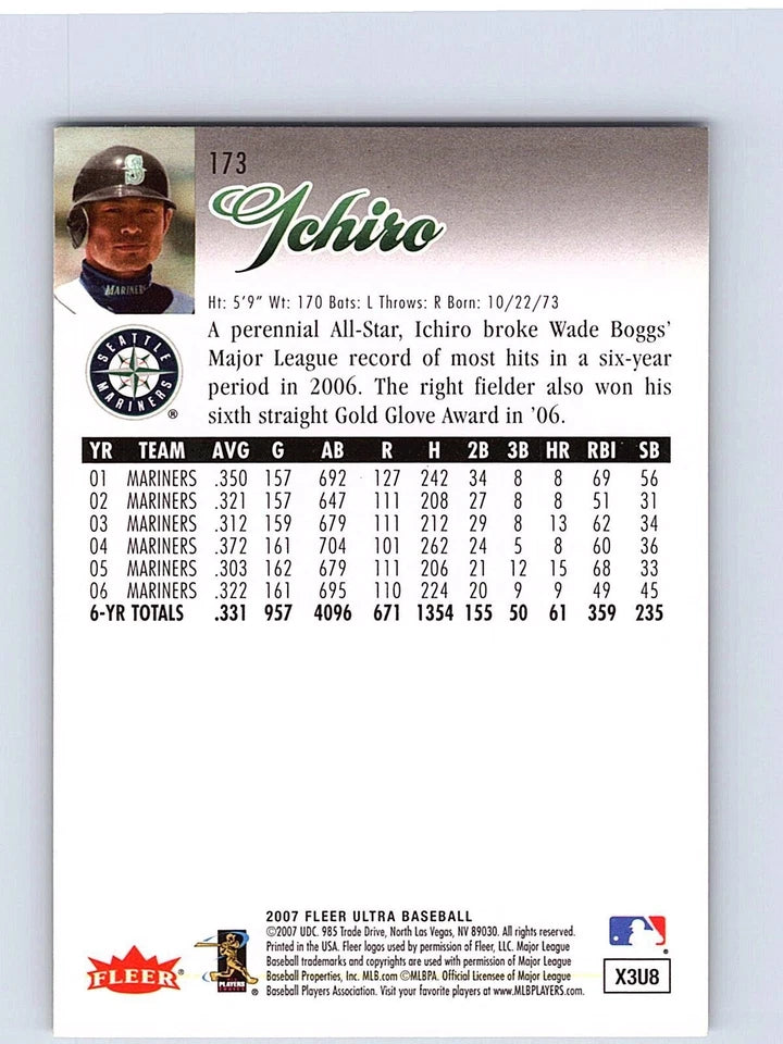 Ichiro Suzuki 2007 Fleer Ultra Series Mint Card #173