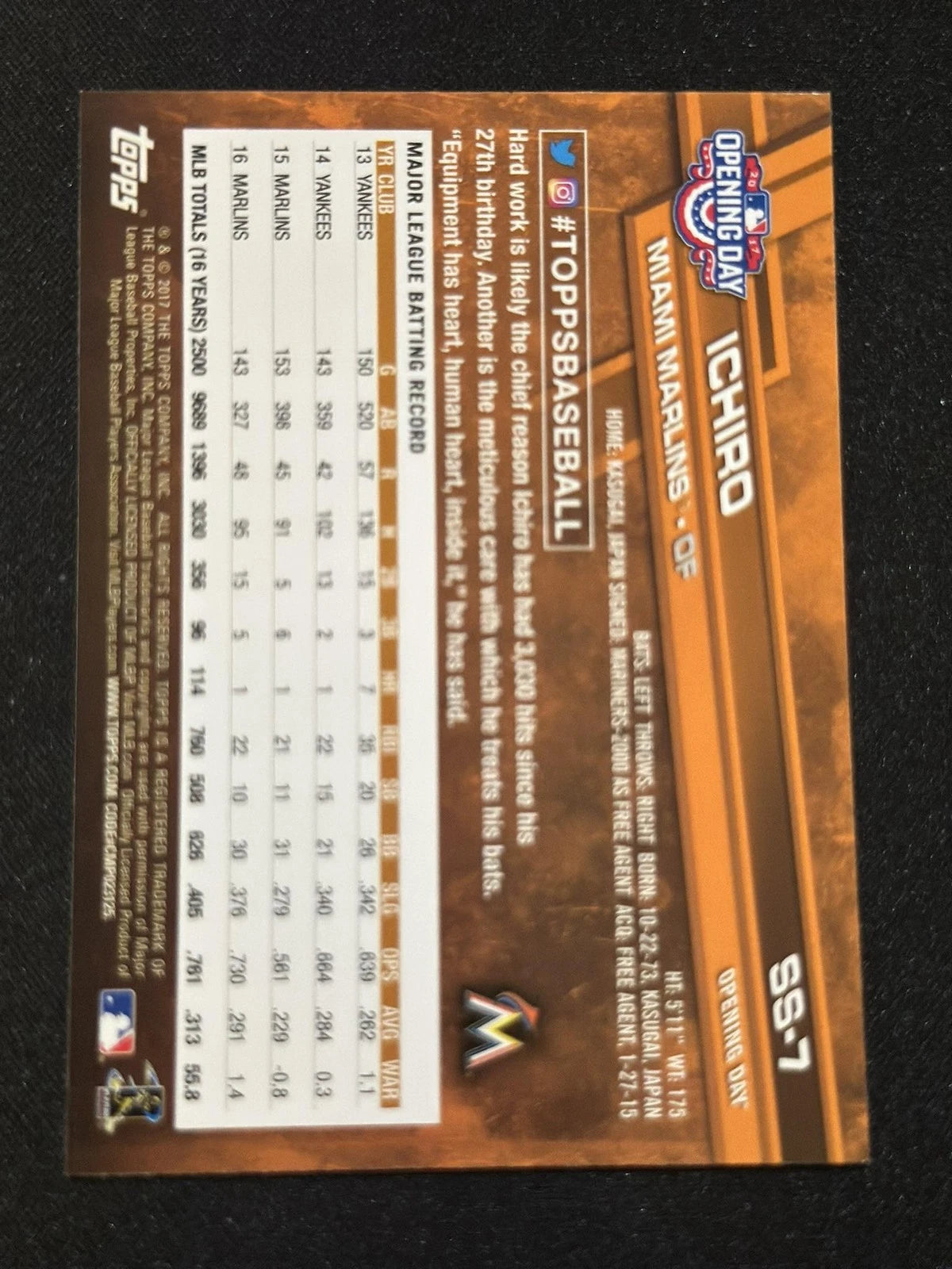 Ichiro Suzuki 2017 Topps Opening Day Stadium Signatures SSP SP Super Short Print Series Mint Card #SS7