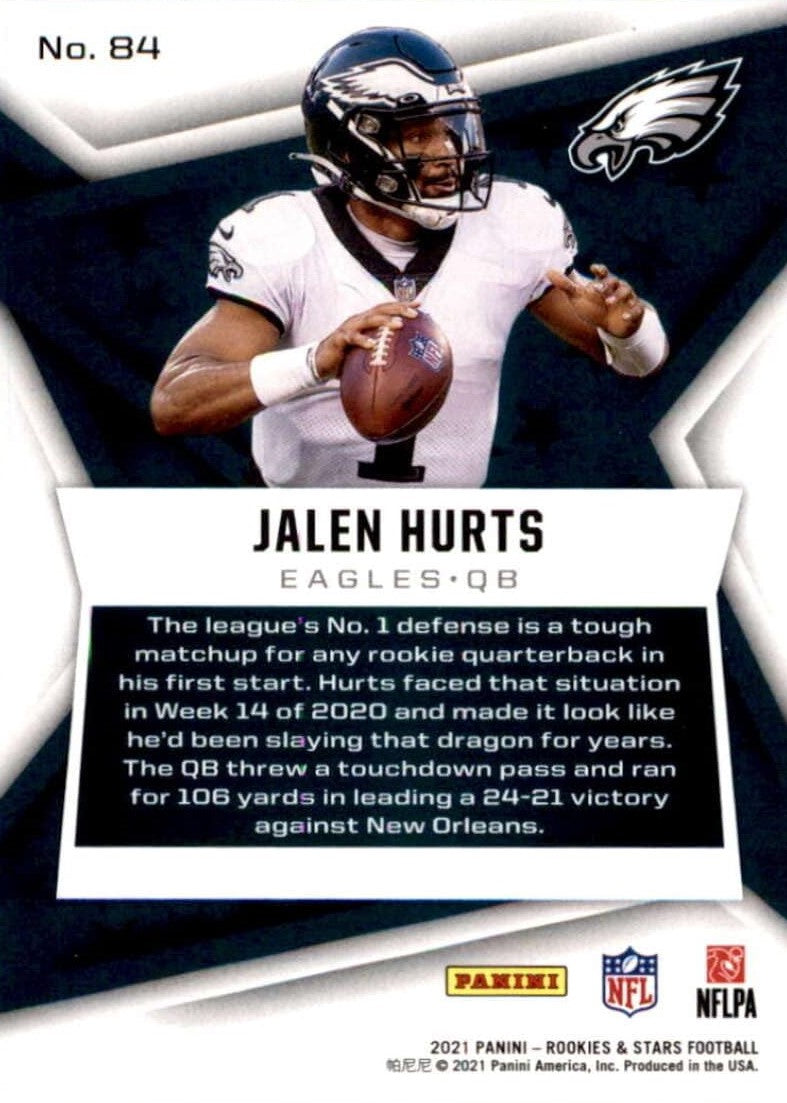 Jalen Hurts 2021 Panini Rookies & Stars Series Mint 2nd Year Card #84