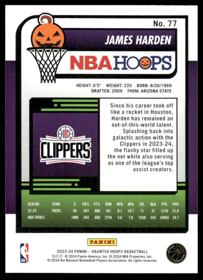 James Harden 2023 2024 Panini Haunted Hoops Series Mint Card #77