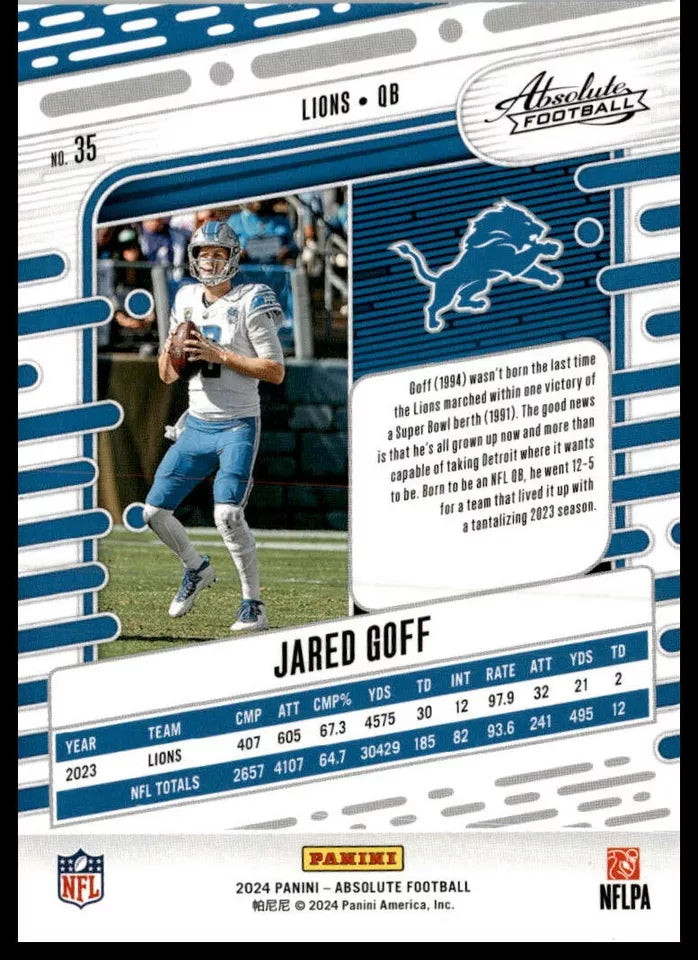 Jared Goff 2024 Panini Absolute Series Mint Card #35