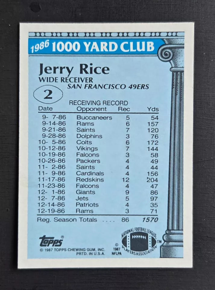Jerry Rice 1987 Topps 1000 Yard Club Series Mint Card #2