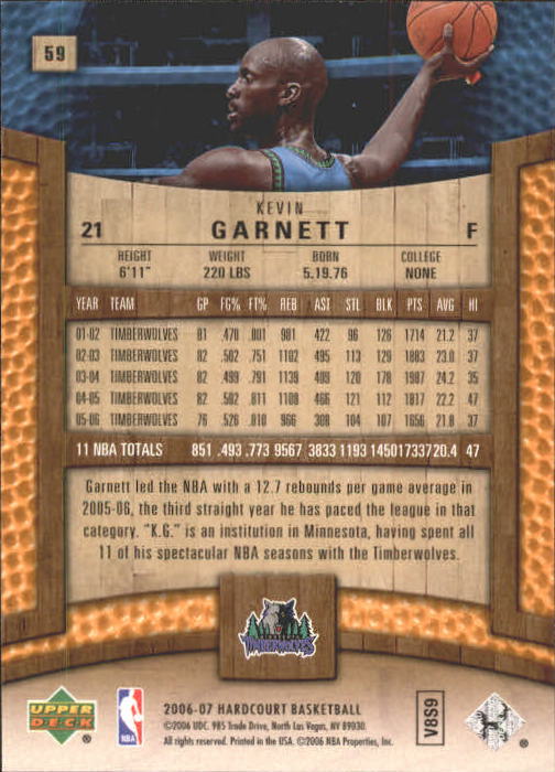 Kevin Garnett 2006 2007 Upper Deck Hardcourt Series Mint Card #59