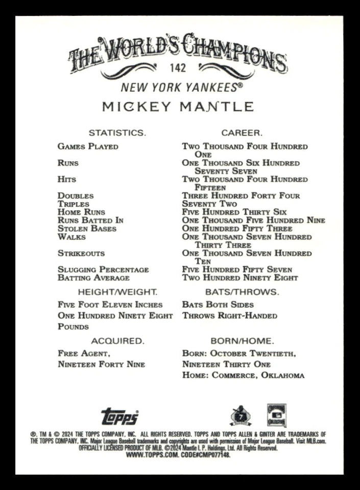 Mickey Mantle 2024 Topps Allen & Ginter Series Card #142