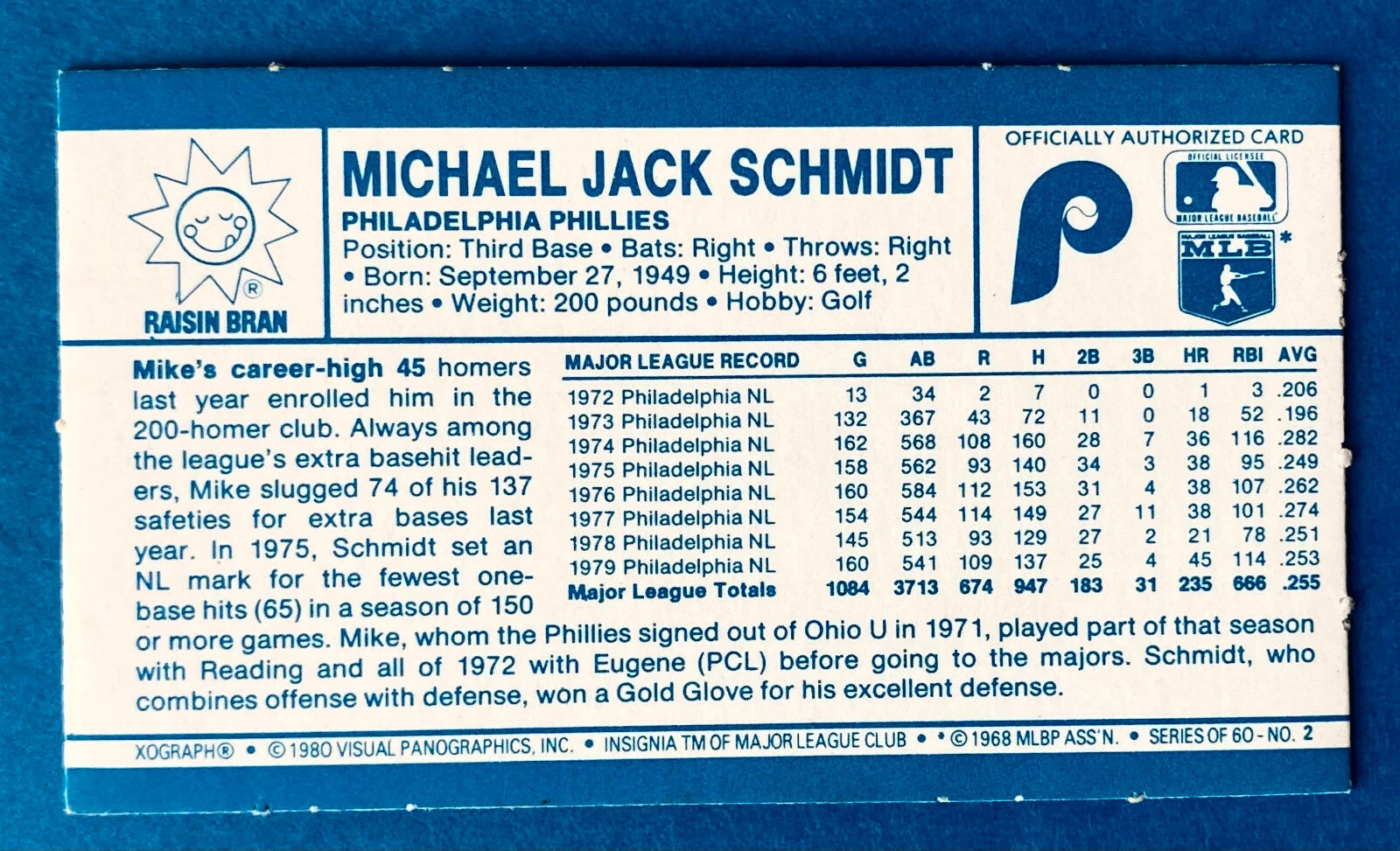 Mike Schmidt 1980 Kellogg's Cereal 3D Mint Card #2
