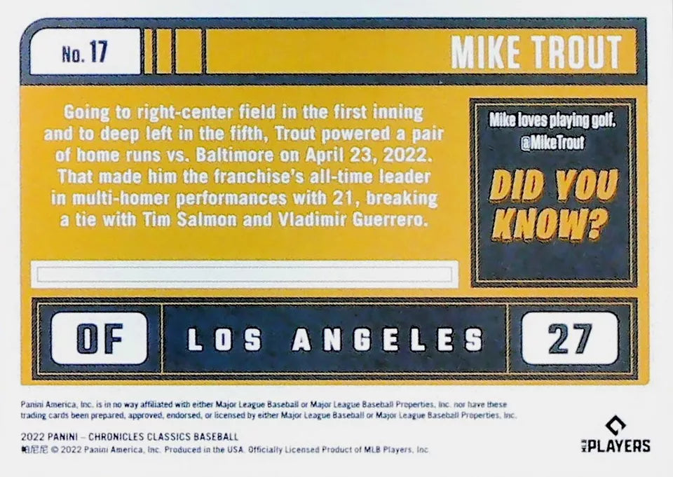 Mike Trout 2022 Classics Chronicles Series Mint Card #17