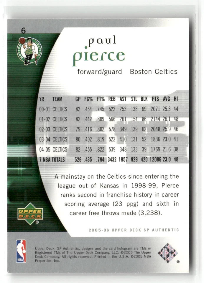 Paul Pierce 2005 2006 SP Authentic Mint Card #6