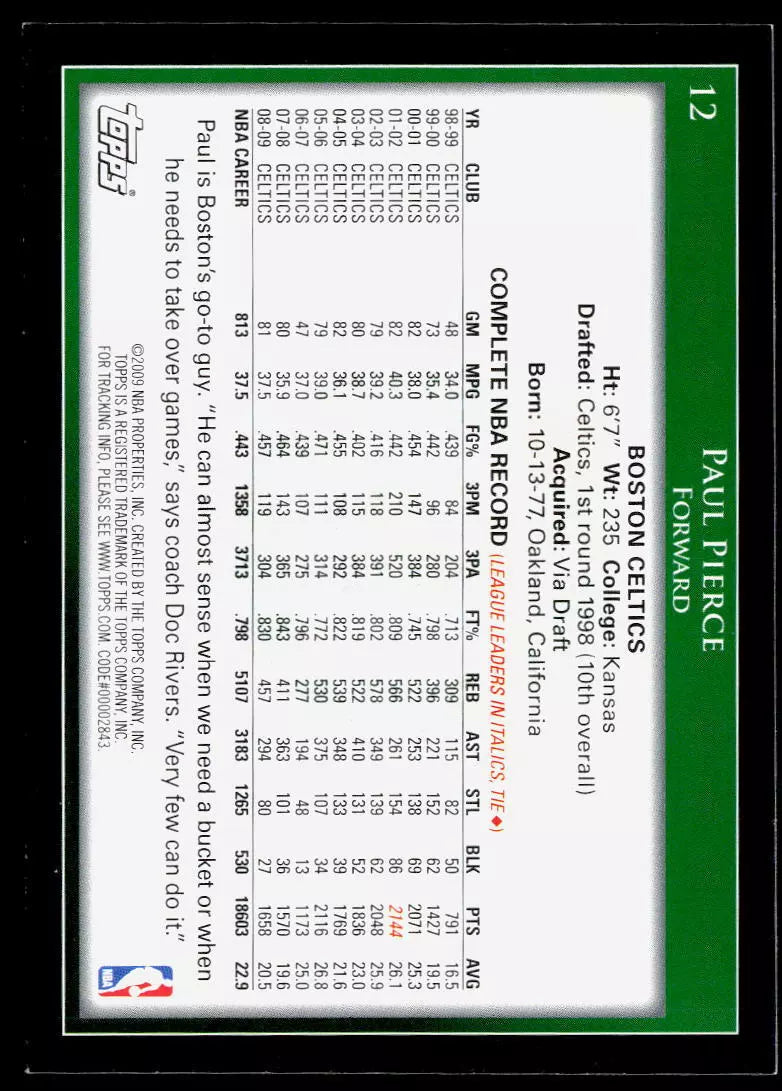 Paul Pierce 2009 2010 Topps Mint Series Card #12