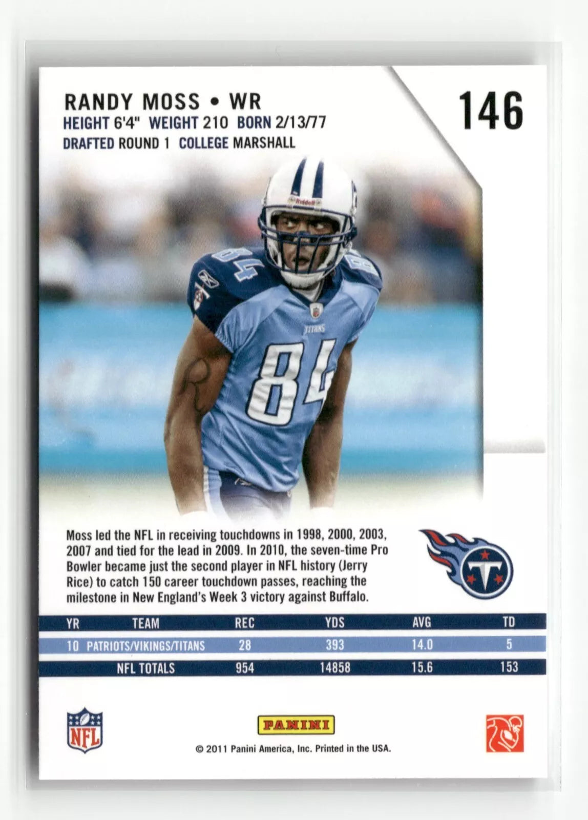 Randy Moss 2011 Panini Rookies & Stars Series Mint Card #146